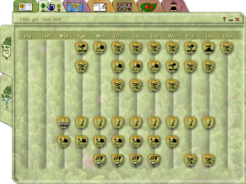 Dodatkowo znajdziemy w programie opisy czynności i narzędzi pielęgnacyjnych. Jest też możliwość wyświetlenia odrębnych kalendarzy pielęgnacji dla roślin ogrodowych i domowych.